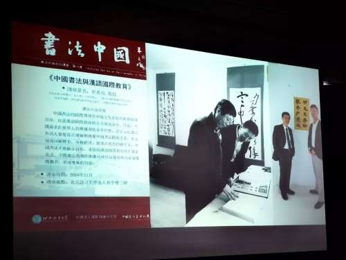 崔希亮教授从汉语研究谈到了汉语国际教育和中国书法国际传播。无论是将成语故事“本土化”讲给澳洲留学生,还是向留学生讲解汉字的结构,同学们都能从中体会到教育的智慧和语言的独特魅力。他还从汉字说起,讲述了汉字的起源与发展。作为世界上最古老的文字系统,汉字有着旺盛的生命力与独特的吸引力。又将汉字的演变历史与书法艺术的发展历程相结合,为同学们生动介绍了中国书法的独特魅力。在书法的国际传播方面,崔教授也身体力行,阐明了书法传播对中国文化走出去的的重要性,让中国汉字书法艺术走向世界,是时代赋予我们的使命。