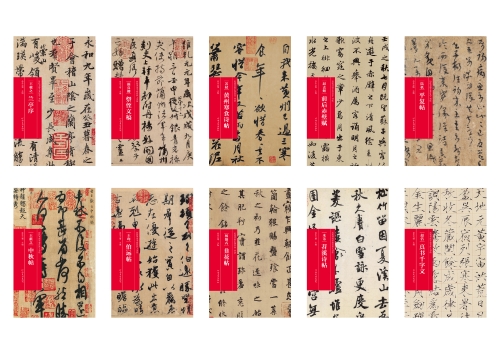 中国古代书法手卷系列第二辑十种包括《兰亭序》《祭侄文稿》《黄州寒食帖》《前后赤壁赋》《平复帖》《中秋帖》《伯远帖》《韭花帖》《苕溪诗帖》《真书千字文》,均为中国书法史上最有影响的经典作品。