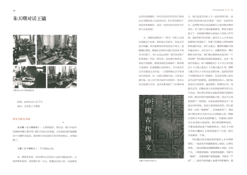 《中国书法国际传播》集刊第二辑为当代书画名家王镛先生开设专题,刊发了中国书法国际传播研究院执行院长朱天曙教授与王镛先生关于“砖文与砖文书法”“隶行与隶草”“对联与匾额”的对话和王镛先生书法作品选,王镛先生为中国书法国际传播研究院题词:“传统今朝”。第二辑还刊发了古代砖文专题,收录了日本学者谷丰信以及中国学者吕金成、朱天曙、刘昕关于古代砖文研究的论文四篇。