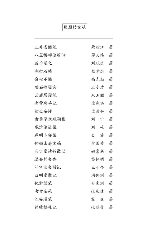 凤凰出版社“凤凰枝文丛”收录文、史、哲、艺学界的学者文化随笔系列,已出版荣新江《三升斋随笔》、刘跃进《跂予望之》、程章灿《潮打石城》、高克勤《会心不远》、王小盾《硬石岭曝言》等二十余种。中国书法国际传播研究院执行院长、中国书法篆刻研究所所长朱天曙教授《竹外集》作为其中一种近期即将推出。