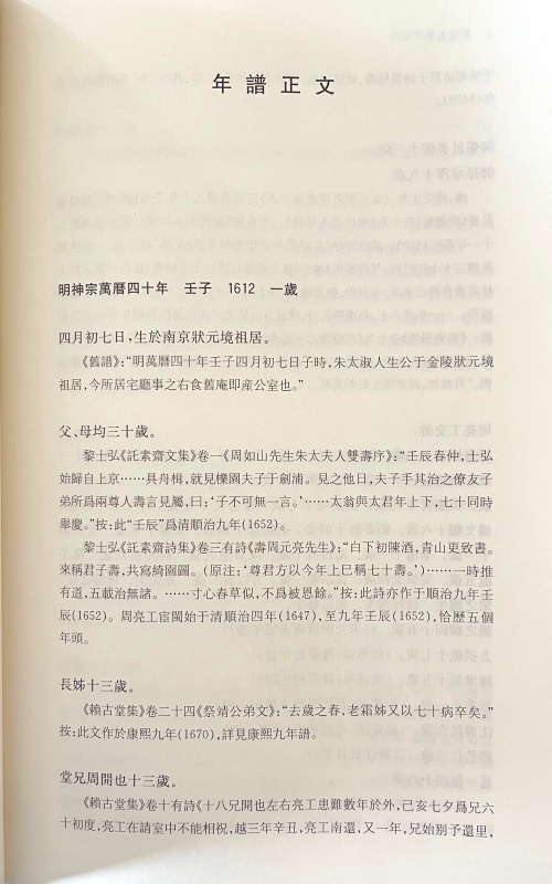 由朱天曙、孟晗编著的《周亮工年谱长编》繁体字横排版列入“书画名家年谱大系”,近日由上海书画出版社出版发行,黄惇教授题写书名。该书是朱天曙教授继《周亮工全集》和《感旧:周亮工及其〈印人传〉研究》之后的又一周亮工研究的重要成果。