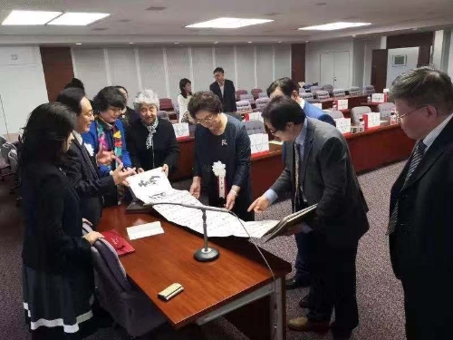 2019年10月,日本关西外国语大学孔子学院成立10周年庆典暨北京语言大学孔子学院联盟工作会在大阪隆重举行,来自11个国家的大学校领导等嘉宾应邀出席开幕式,朱天曙教授代表中国书法国际传播研究院出席日本关西外大孔院十周年庆典。