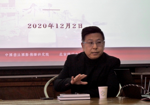 由中国书法国际传播研究院、北京语言大学艺术学院共同主办的“北京语言大学书法本科专业教学座谈会” ,2020年12月2日下午在逸夫教学楼举行。中国书法国际传播研究院执行院长朱天曙教授、艺术学院史大鹏副院长以及校内外书法专业任课教师刘亚刚、李立山、陈雅楠、韩龙、朱文哲、赵汗青等参加了会议。会议由书法教研室主任梁文斌副教授主持。