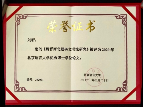 近日,北京语言大学2020年优秀博士学位论文结果公布。中国书法国际传播研究院博士刘昕的《魏晋南北朝砖文书法研究》一文入选。