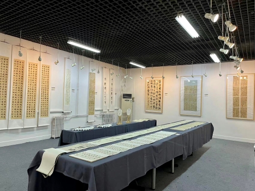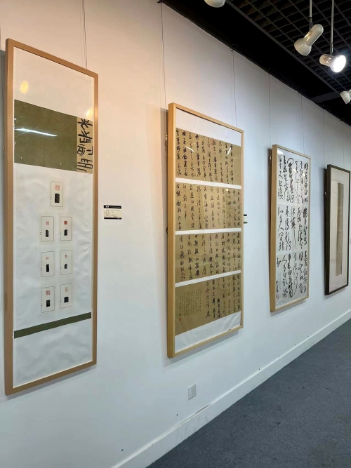 本次展览是北语书法专业研究生创作教学的集中展示,共展出北语2020级硕士、博士研究生吴倩、崔书赫、陈国敬、程玉儿、郭睿、刘学、王先志、周展乐八位同学的书法、篆刻、中国画近作50件。此次展览作品创作风格多样,或雄强,或婉约,或榜书,或小楷,篆书、隶书、楷书、行书、草书诸体兼有,在书法篆刻临习和创作的同时,还注重书画印融通的创作实践。本次展览作品形式十分丰富,包括册页、手卷、条幅、扇面等,令人耳目一新。