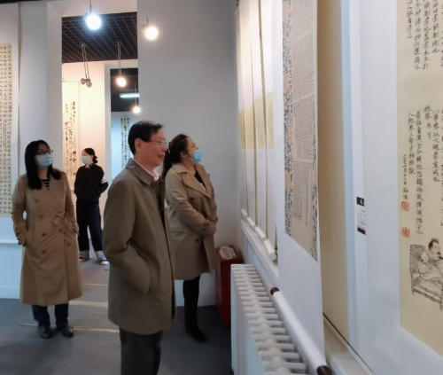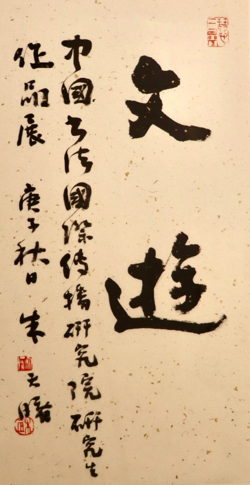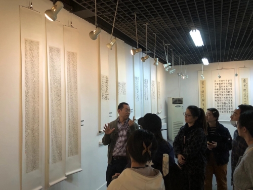 “文游——中国书法国际传播研究院研究生作品展”于2020年10月19日——26日在北京语言大学教四楼西侧艺术展厅举办,院长崔希亮教授为展览题词“鉴水平云”,执行院长朱天曙教授为展览题写展名。本次展览是疫情后在我校举办的首个专业展览,书法专业任课老师、在读硕博研究生、本科书法专业学生和全校师生书法爱好者参观了展览。