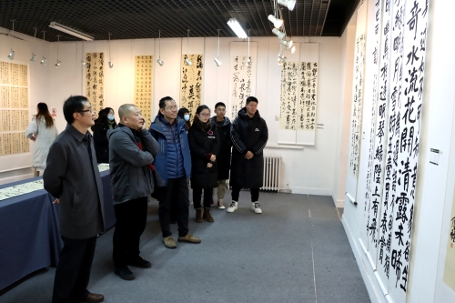 讲座最后,现场开放了三个问题。崔希亮教授向王登科教授提出:“如何能保持一颗赤子之心?”现场同学提出:“面对现在的一些展览,书法专业的学生应当如何进行创作?”等问题,王登科教授都一一进行了解答。王教授指出,大学要有大学的尊严,一些展览只是对学书者的一种检验。朱天曙教授对本次讲座内容进行了概括,他指出王登科教授结合创作来讨论书论,是一次特别的讲座并且非常受用。第一,用自己的眼睛来学习书法艺术很重要;第二,用天真烂漫的心来领会古代的书论,才能发现和找到启示;第三,艺术就是不断地“跑题”,是不断地创造。讲座结束后,王登科教授在崔希亮教授、朱天曙教授、梁文斌副教授的陪同下,参观了北京语言大学2017级书法专业本科生作品展,现场对同学们的作品进行了点评。